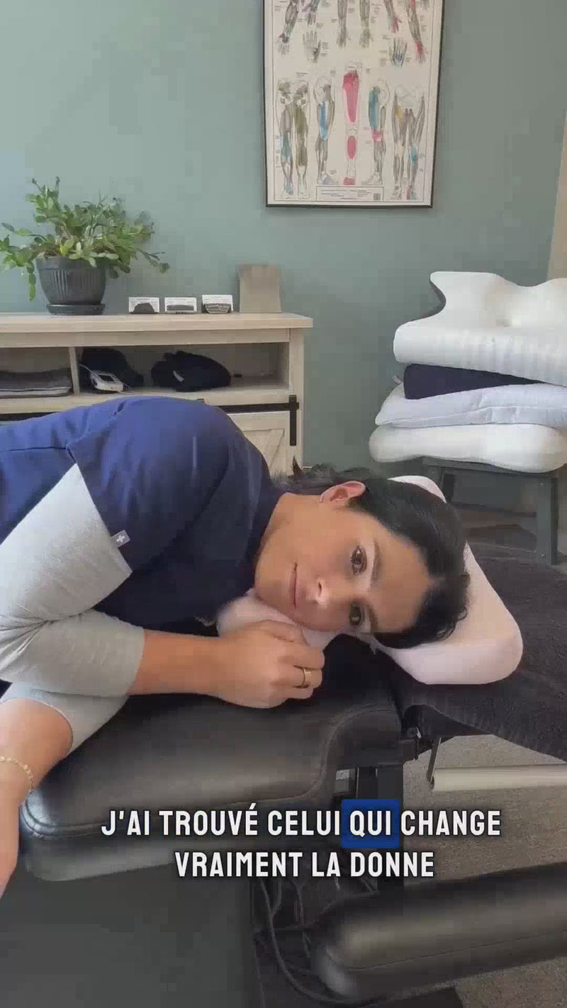 "Le SEUL oreiller que je prescris systématiquement à mes patients souffrant de douleurs cervicales chroniques. Les résultats sont mesurables : -73% de douleurs en moyenne après 7 nuits, alignement vertébral optimal maintenu toute la nuit."
